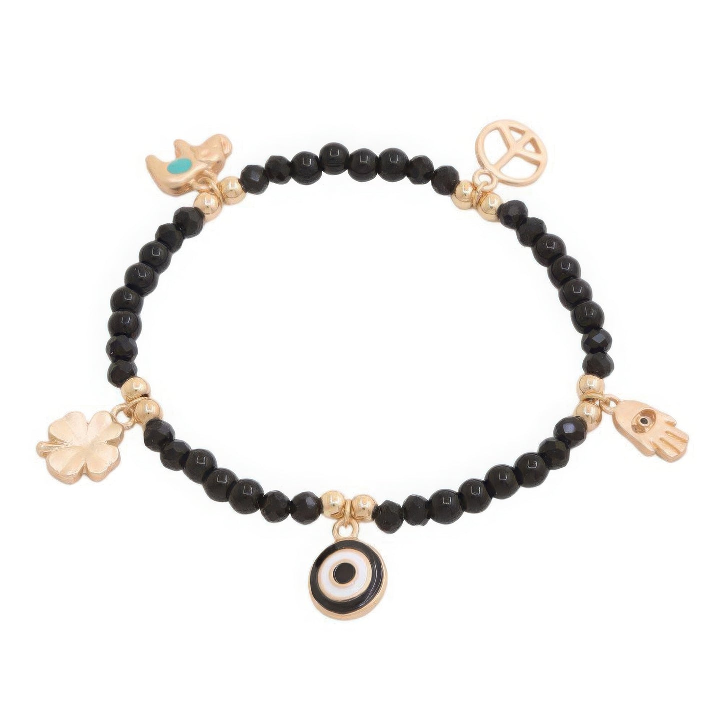 "I absolutely love this bracelet! The evil eye and clover charms are so unique and stylish." - Maria S.