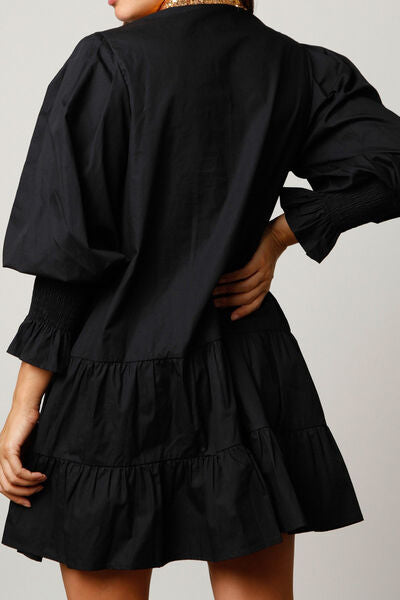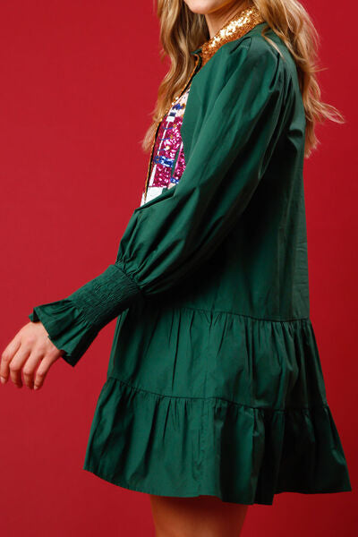 Full Size Nutcracker Sequin Lantern Sleeve Tiered Dress